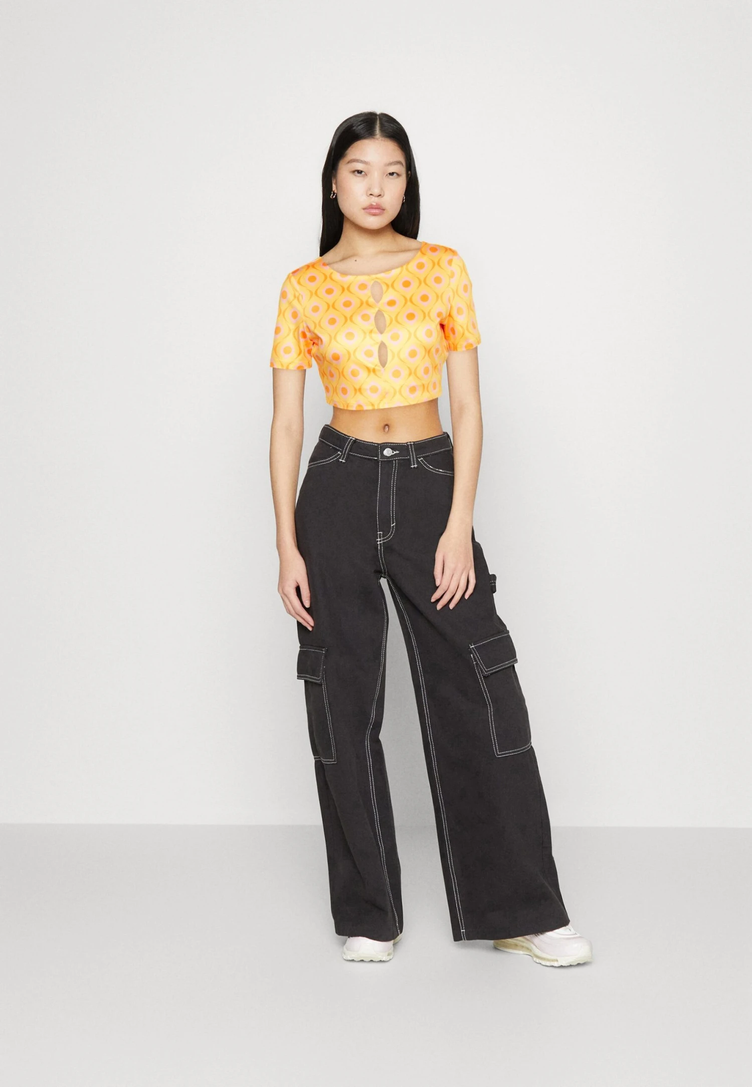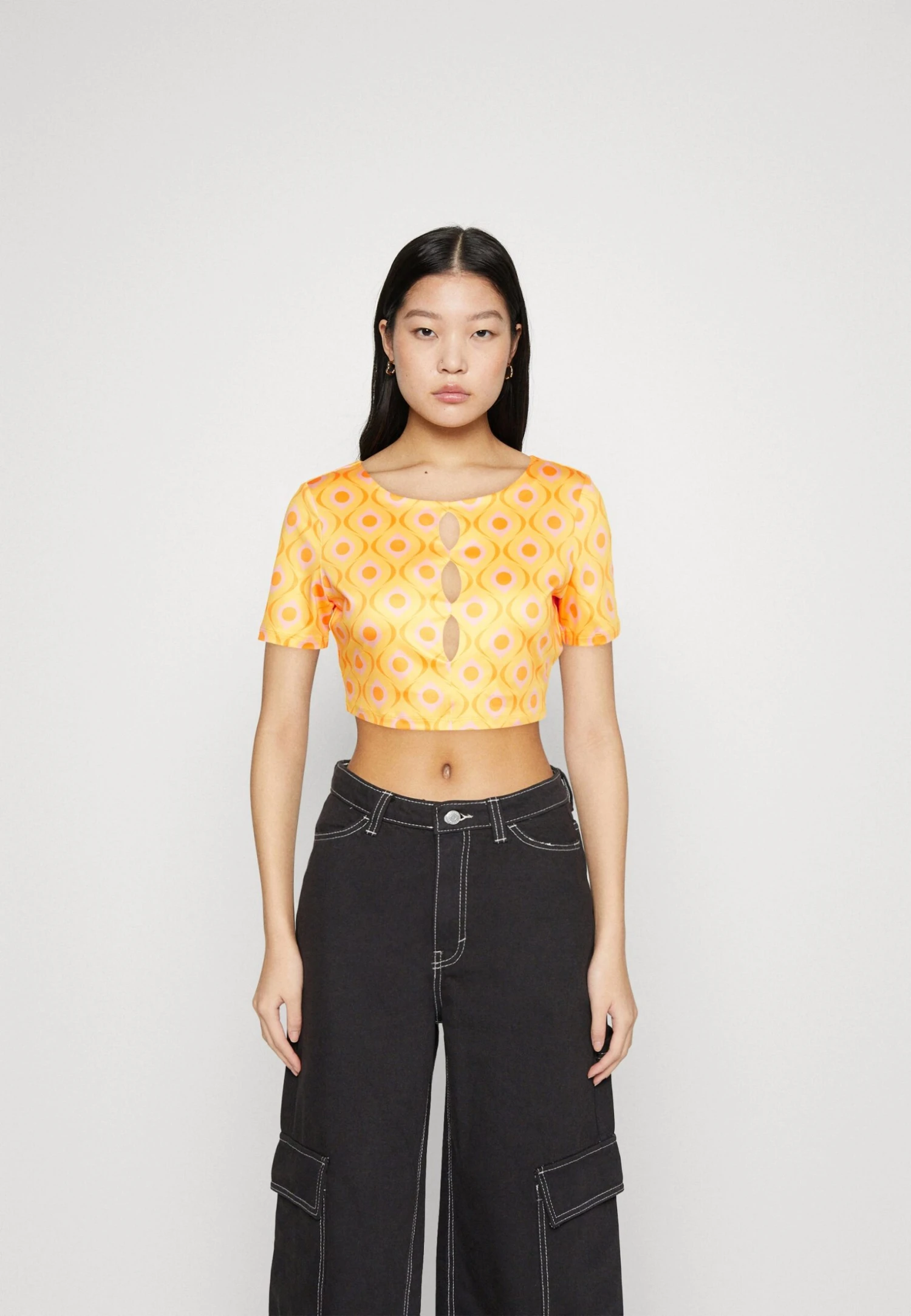 Noisy May Petite Nmtalli Cross Neck Crop – Débardeur – Sun Kissed Coral/Eggnog/Pale Lime