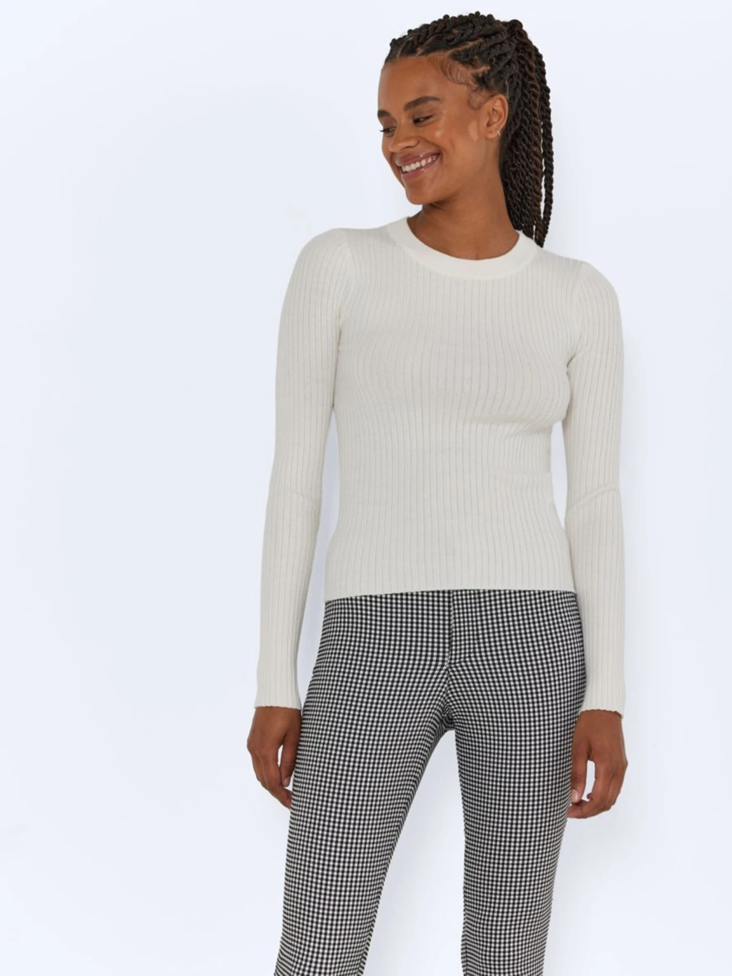 Noisy May Pulls Basiques Pull-over Femme Blanc Cassé