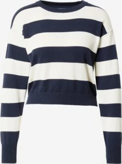 Noisy May Pulls Maille Fine Pull-over Femme Bleu Foncé / Blanc